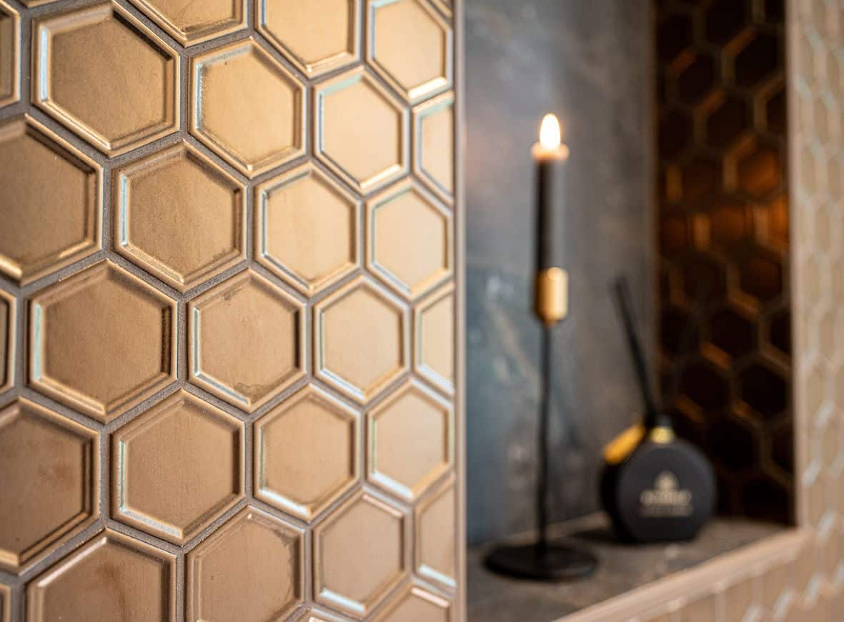 Ontdek hoe gouden tegels jouw interieur transformeren. Of je nu voor veel of weinig goud kiest. Keramische gouden tegels bieden talloze mogelijkheden.