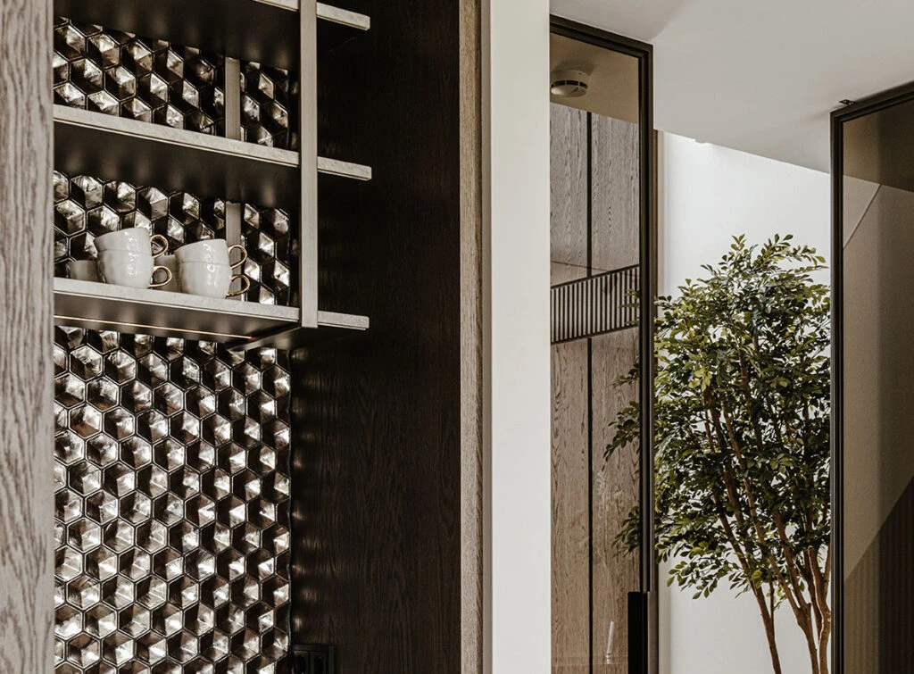 Voor deze exclusieve villa realiseerde TÉGL het tegelwerk in de koffiehoek. Er is gekozen voor kleine tegels uit de Botteganove-collectie. De tegels voegen karakter en verfijning toe en vormen een subtiel, maar opvallend detail binnen het interieur.