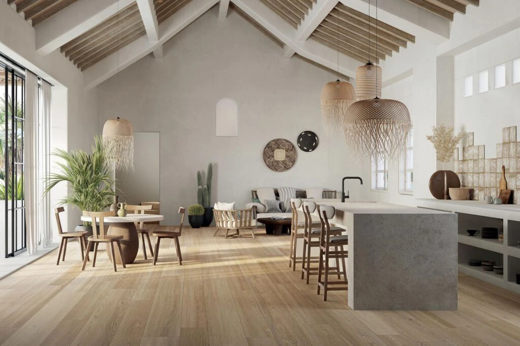 De houtlook past in veel verschillende interieurstijlen, als subtiel accent en als de toonzetter van het interieur. We lichten daarom een aantal interieurstijlen uit die goed passen bij houtlook keramische tegels.