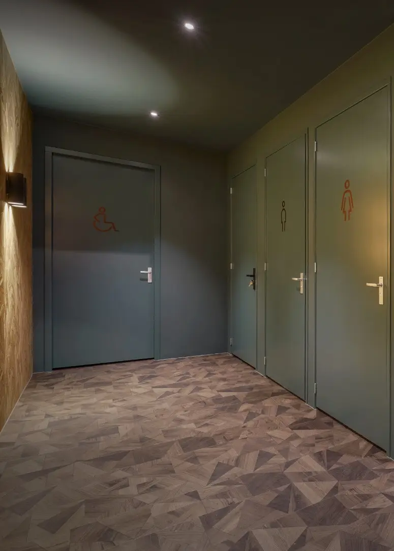 Voor woonwinkel Rhetap in Barneveld verzorgde TÉGL een interieur waarin warmte en eigentijdse stijl samenkomen. De basis is een keramische vloer met houtlook tegels, gecombineerd met gouden accenttegels in keuken en toilet. Het consequente gebruik van deze materialen creëert een krachtig en harmonieus geheel dat past bij de moderne uitstraling van de winkel.